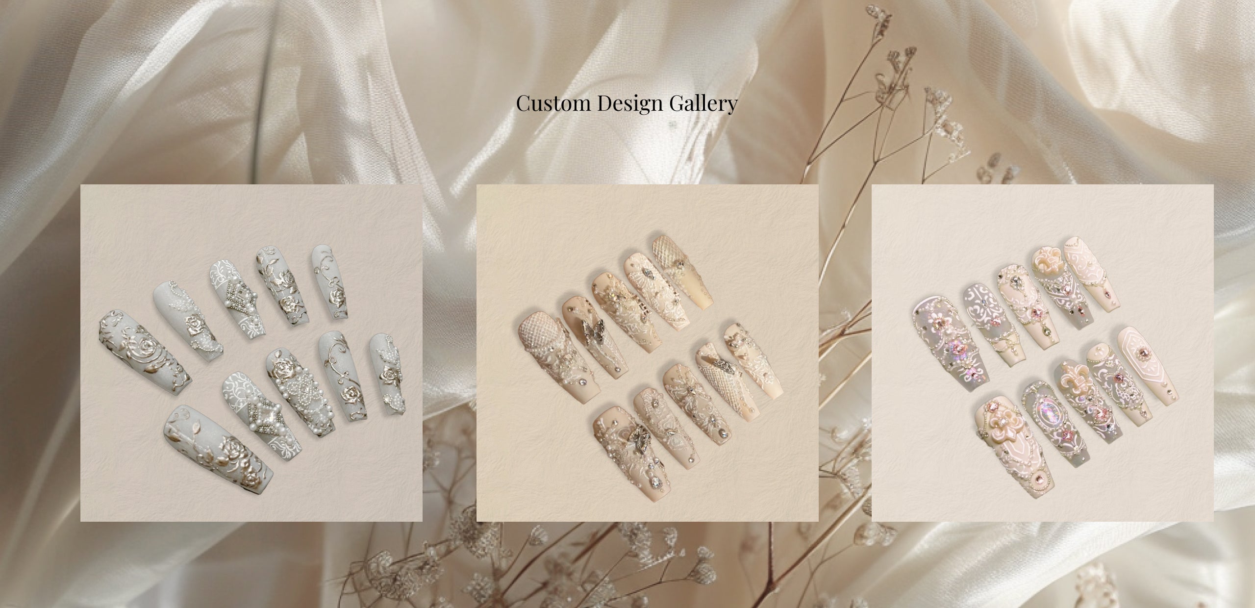 Your wedding nails should be as unforgettable as your vows. Our Wedding Collection offers delicate lace patterns, floral accents, and matte French tips—all customizable to match your gown and bouquet.