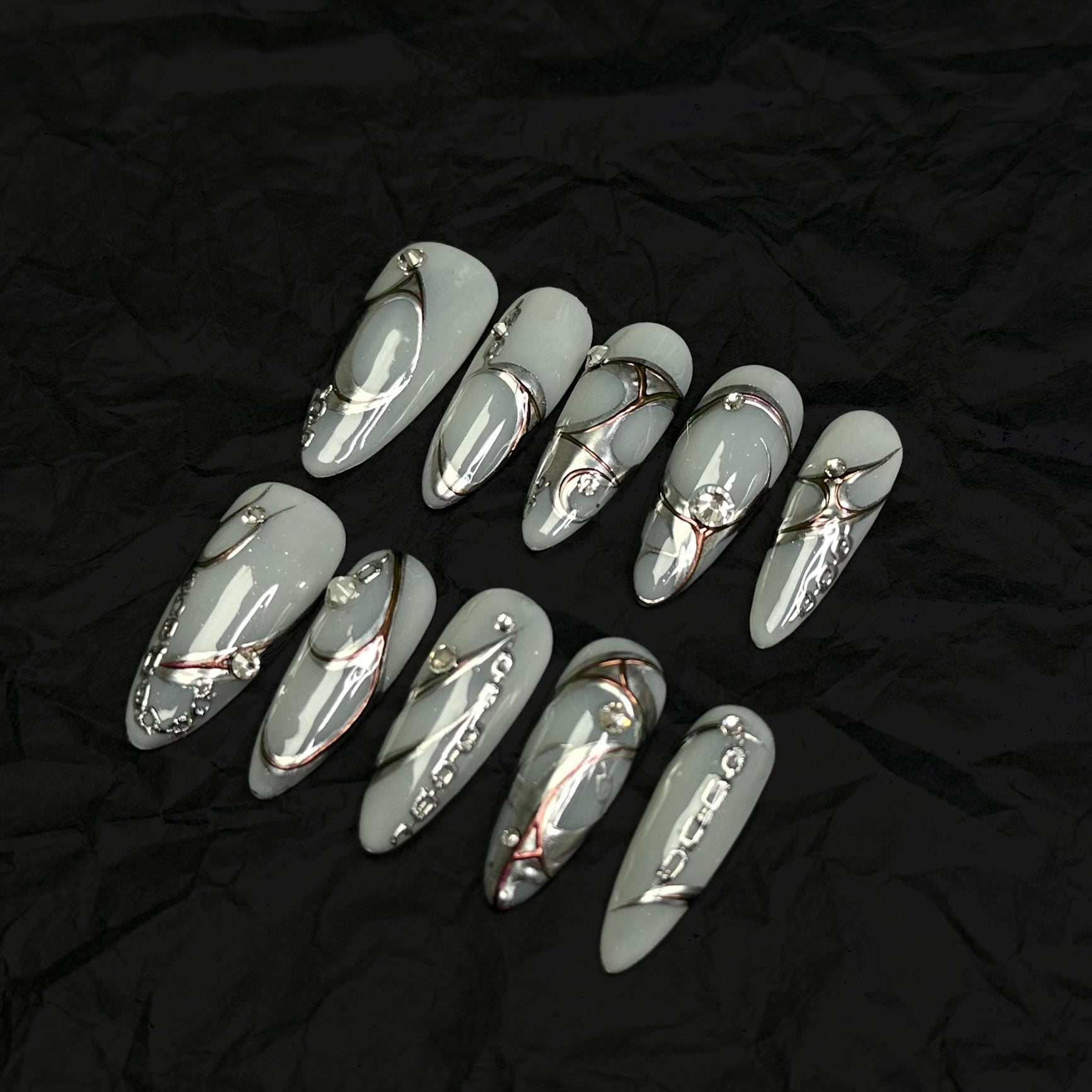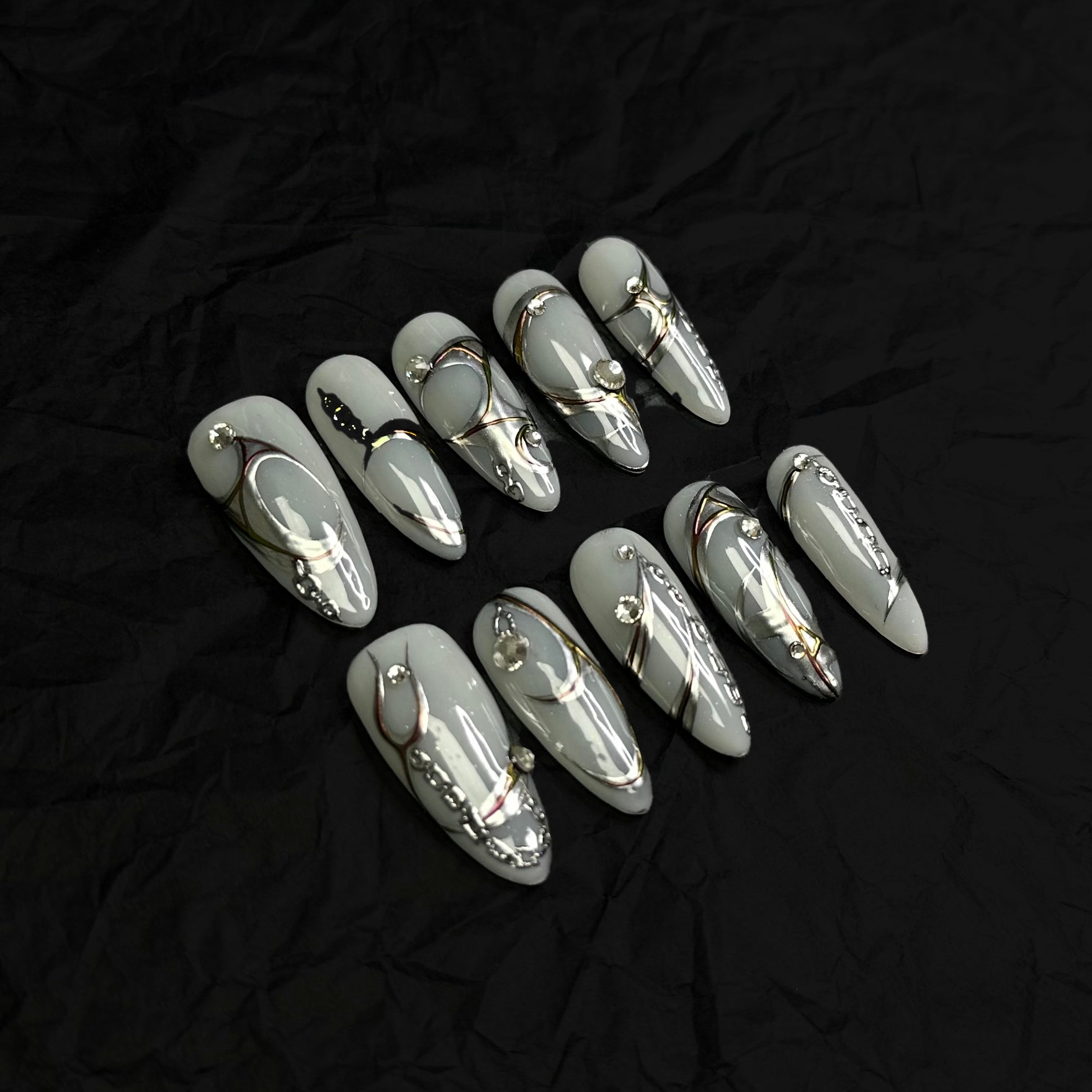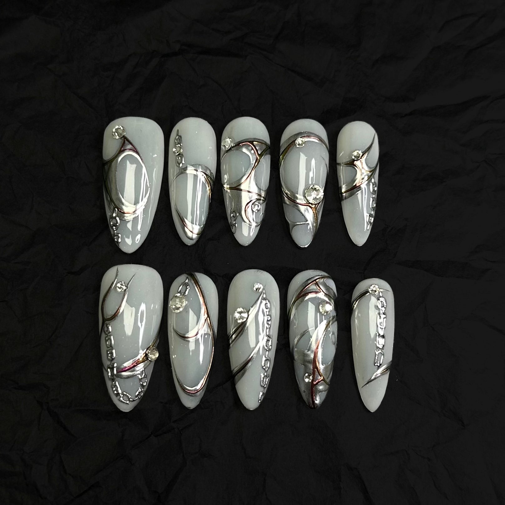 Press-on Set|Smoke Grey × Silver Chains × Bloodline Accent