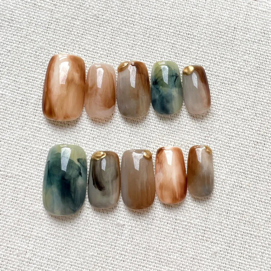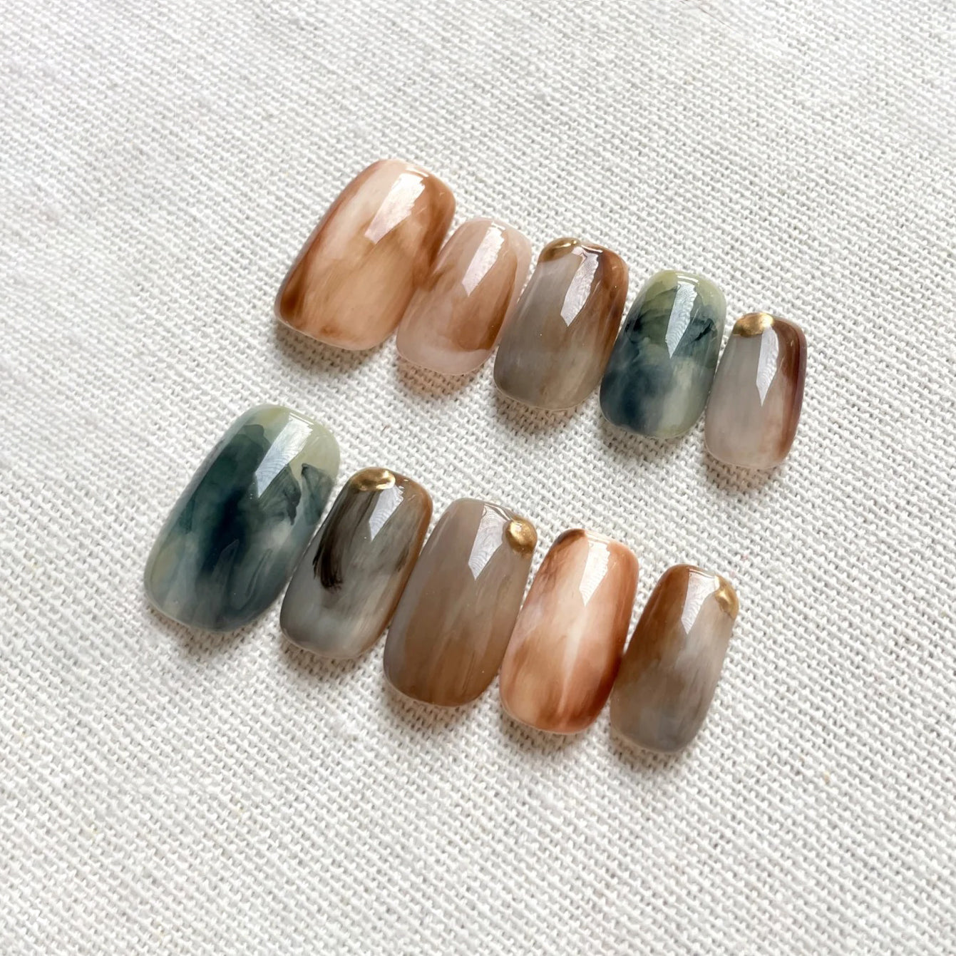 Press-on Set|Amber Brown × Moss Green × Misty Grey