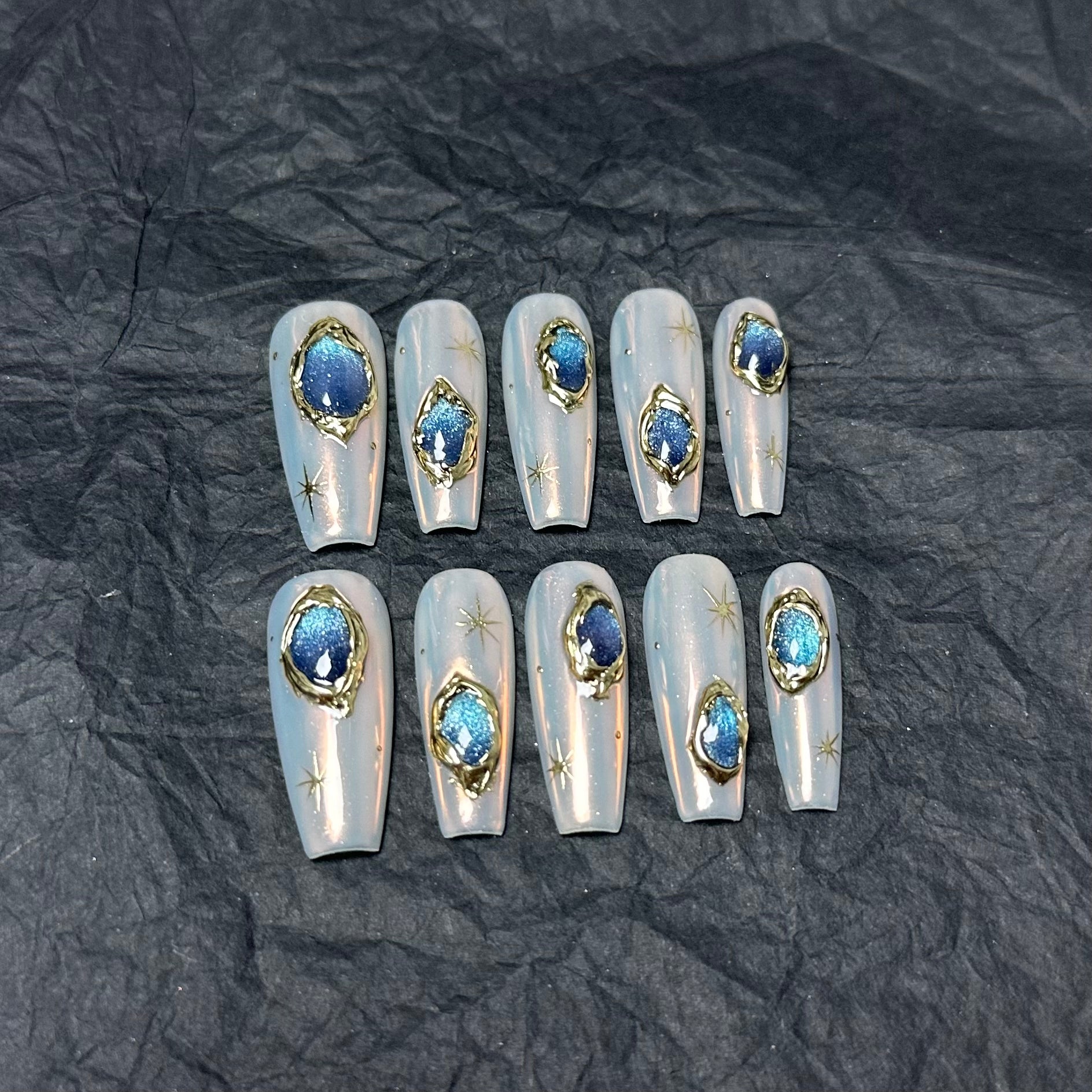 Press-on Set|Blue Stone × Gold Frame × Star Map Mood